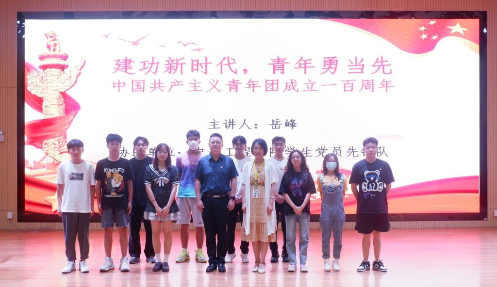 会上,岳峰教授带领大家回顾中国共产主义青年团成立100周年庆祝大会概况,并将习近平总书记在大会上的讲话精神分为四个要点带领大家进行解读,鼓励青年学生在工作、学习岗位上努力钻研,不忘初心、牢记使命,充分发挥自己的积极性和创造性。希望青年学生要深刻理解党中央对青年工作的重要指示,以实际行动响应习近平总书记的号召。