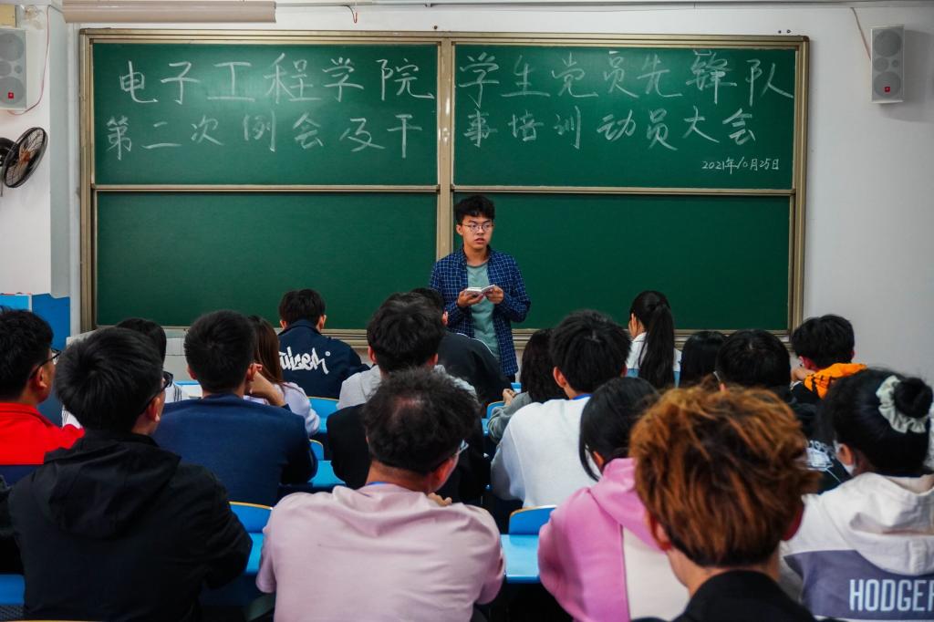 为更好地促进各部门的协调发展,10月25日中午,电子工程学院学生党员先锋队在32307教室召开干事培训动员大会,先锋队全体队员参会。