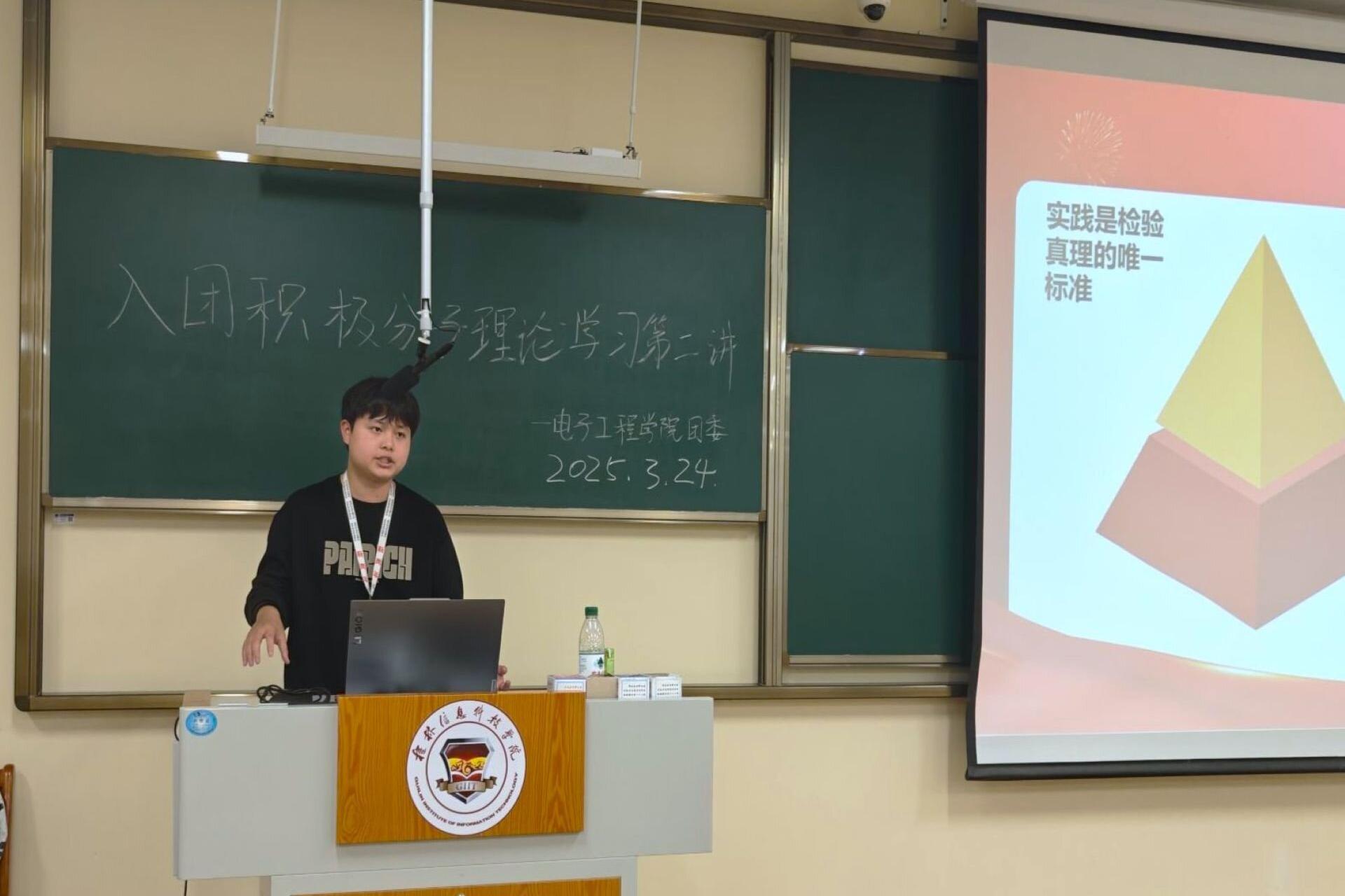 为深入贯彻落实习近平总书记关于加强新时代团员队伍先进性建设的重要指示,强化青年思想引领。2025年3月20日-27日,电子工程学院组织开展了入团积极分子团课培训。本次培训围绕“共青团的光辉历程”、“青年,你为什么要入团”、“传承雷锋精神,争做新时代青年”等八个主题展开,全院282名入团积极分子参与。