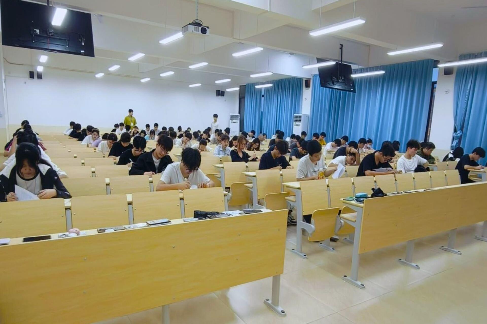 本次考试采取闭卷方式进行。开考前,同学们将手机上交至监考员统一放置,确保考试公平公正。考试内容涵盖党的二十大精神、共青团基础知识、中国共产主义青年团章程等内容,全面检验入团积极分子的学习成效,确保团员发展质量。考场秩序井然,同学们认真作答,展现了我院学子积极向上的精神风貌。