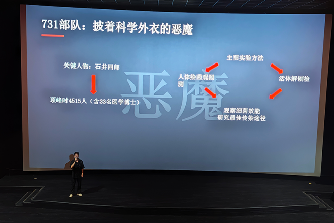 授课中,张泽鑫老师还重点讲解了731部队的反人类实验手段:从令人发指的人体染菌观测、活体解剖检测,到冻伤实验、毒气实验等。让在场党员对这段黑暗历史有了更直观、全面的认知。