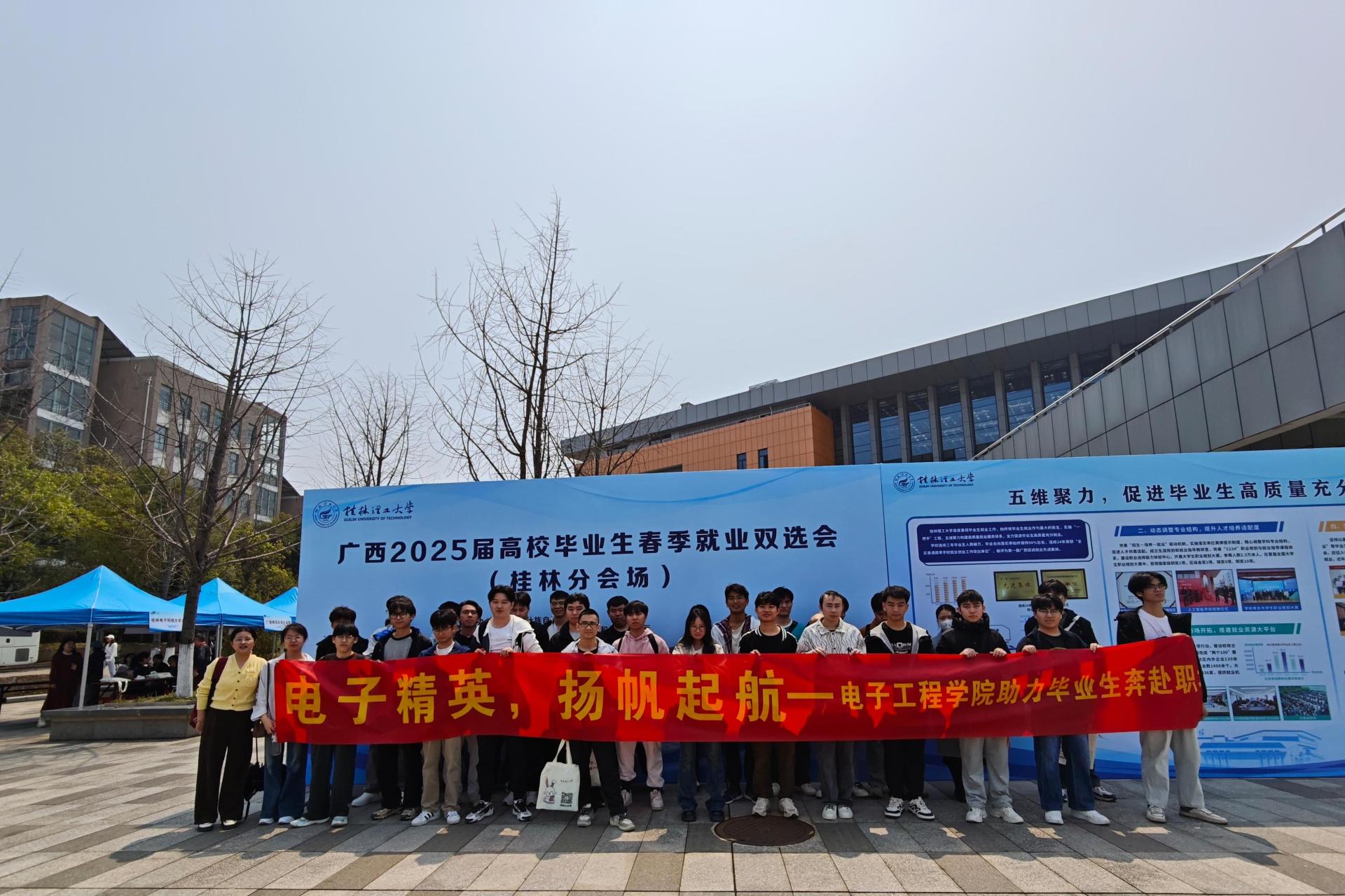 为抢抓春招关键期,助力毕业生高质量就业,3月22日,电子工程学院毕业班辅导员带领60余名2025届毕业生赴桂林理工大学参加“‘职’启新程,‘位’你而来”广西2025届高校毕业生春季就业双选会(桂林分会场)。