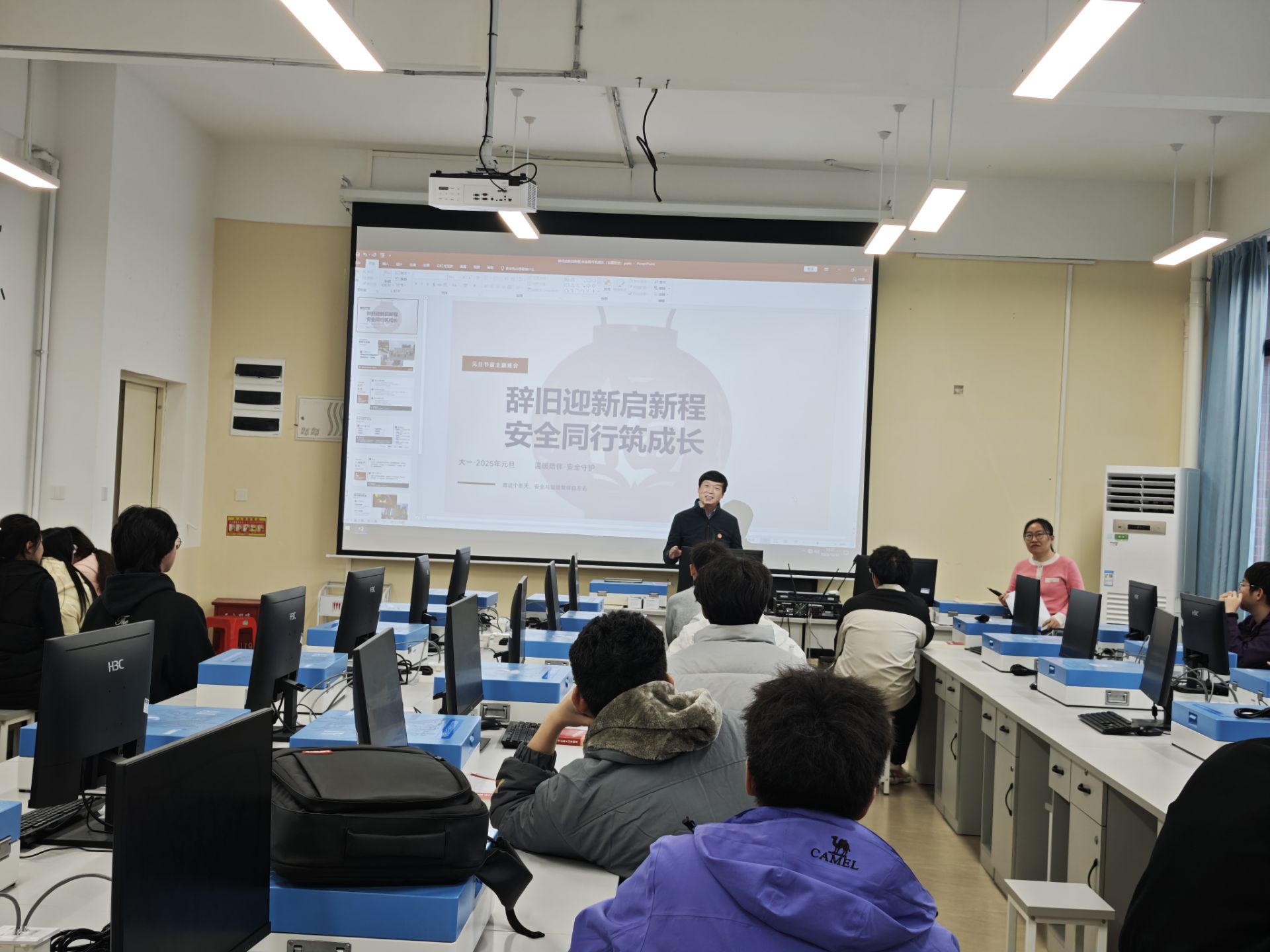 12月31日,电子工程学院2025级电子信息工程1班“辞旧迎新启新程,安全同行筑成长”主题班会在敦明楼A212顺利举行。班主任许玲主持,校长解庆林亲临现场,与同学们亲切交流,并送上真挚的新年祝福。