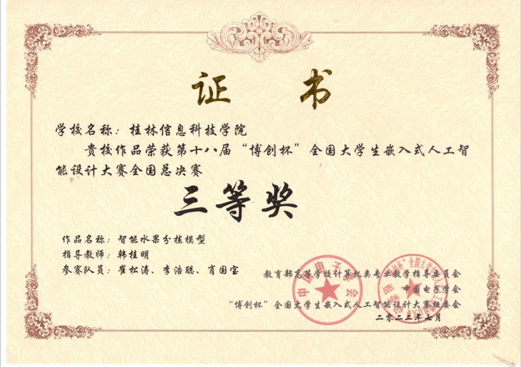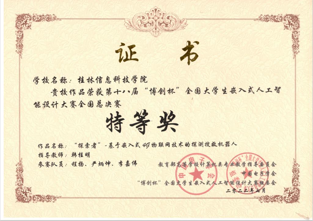 近日,第十八届“博创杯”全国大学生嵌入式人工智能设计大赛(全国总决赛)在北京成功举办,全国近200支队伍入围总决赛。通过两天的激烈角逐,最终获得5项国奖,获奖队伍均来自学校电子工程学院,其中全国特等奖1项,全国二等奖2项,全国三等奖2项,成绩在同类民办院校中名列第一。