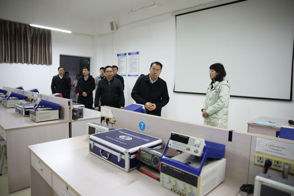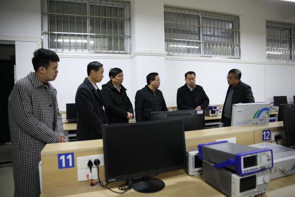 汇报会结束后,专家组在甘勇校长、陈智勇副校长的陪同下,实地考察了四个重点专业的实验室建设情况,详细查阅了各专业的支撑材料及审计报告等材料,并与参会人员进行了交流座谈。