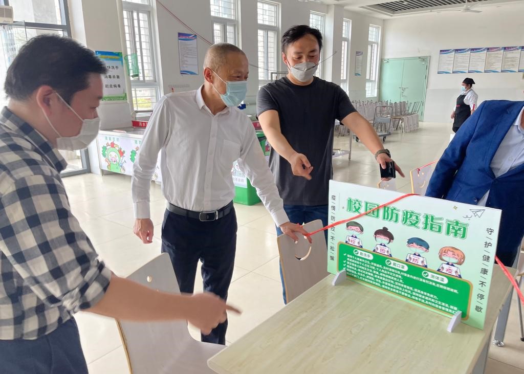 当天下午,新弘电集团领导和学校领导罗捷、梁丁丁、唐步洲、李飞分别带队前往校大门,看望慰问了坚守在一线的工作人员,了解当前返校学生的基本情况,叮嘱既要做好服务工作,也要提高个人防护意识。随后,领导们深入食堂、公寓等,了解食堂就餐环境、防控措施和学生入住情况。