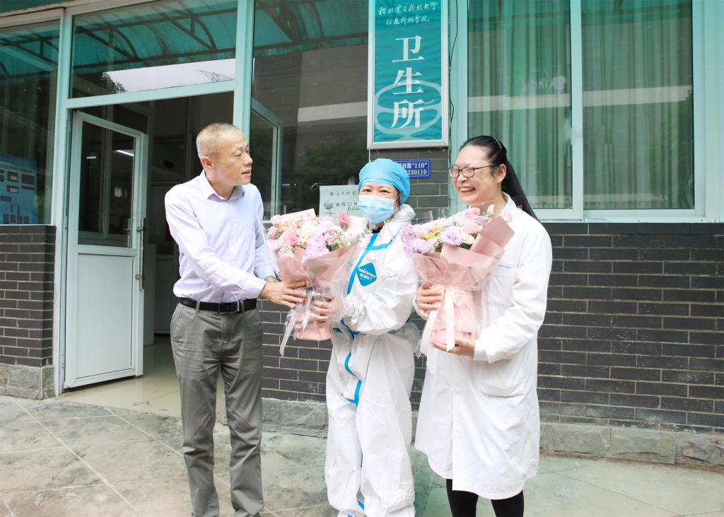 梁丁丁校长为全体医护人员献上鲜花和节日的问候,并代表学校向医务工作者为守护学校师生健康所付出的努力表示真诚的感谢,并对她们在疫情防控常态化下坚守一线、不顾个人安危,在校园健康观察区管理、发热学生应急处置、学生返校疫情防控等重大工作任务中所展现的无私无畏、负重前行表示崇高的敬意,同时鼓励全体医护人员继续坚持以护佑师生健康、校园平安为己任,践行南丁格尔誓言,用双手呵护健康,用爱心温暖人心,为守护来之不易的疫情防控成果作出更大的贡献。