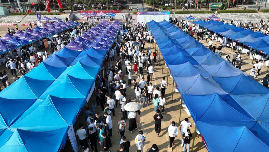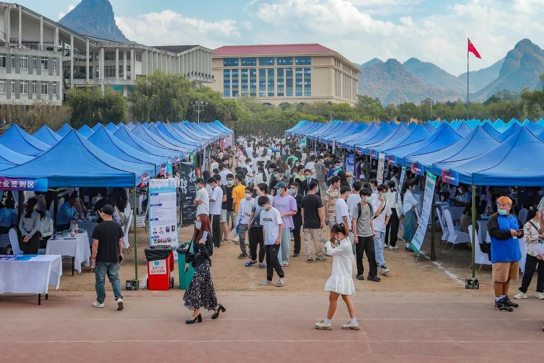 11月11日,碧空如洗,惠风和畅,pp电子在田径场举行2023届毕业生“双向选择”洽谈会,来自区内外近300家企业提供信息技术、软件开发、机械工程、财务管理、市场营销、环境设计、国际贸易等10000余个就业岗位。根据疫情防控最新要求,不能入校招聘的企业采取线上直播方式同期招聘,参加双选会的单位和个人再创历史新高。