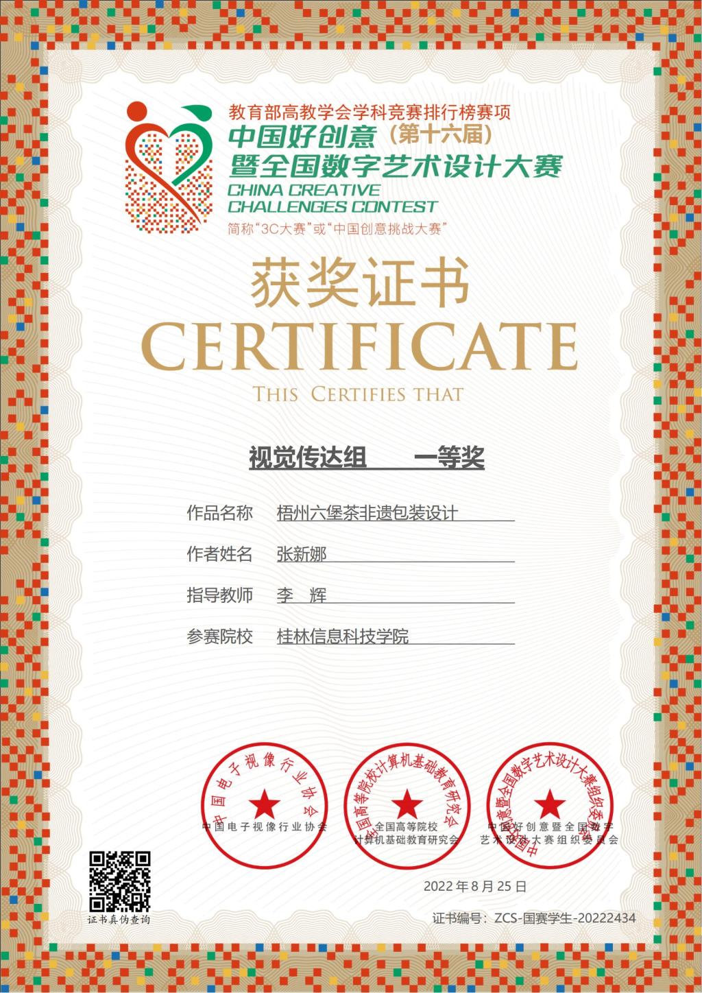 中国好创意暨全国数字艺术设计大赛是由中国电子视像行业协会、中国好创意暨全国数字艺术设计大赛组织委员会主办,入选中国高等教育学会发布的《全国普通高校学科竞赛排行榜》赛项。大赛以数字艺术为核心,是艺术设计、数字媒体、数字技术等专业领域里的综合性赛事,也是规模大、参赛院校多、影响广泛的权威赛事。