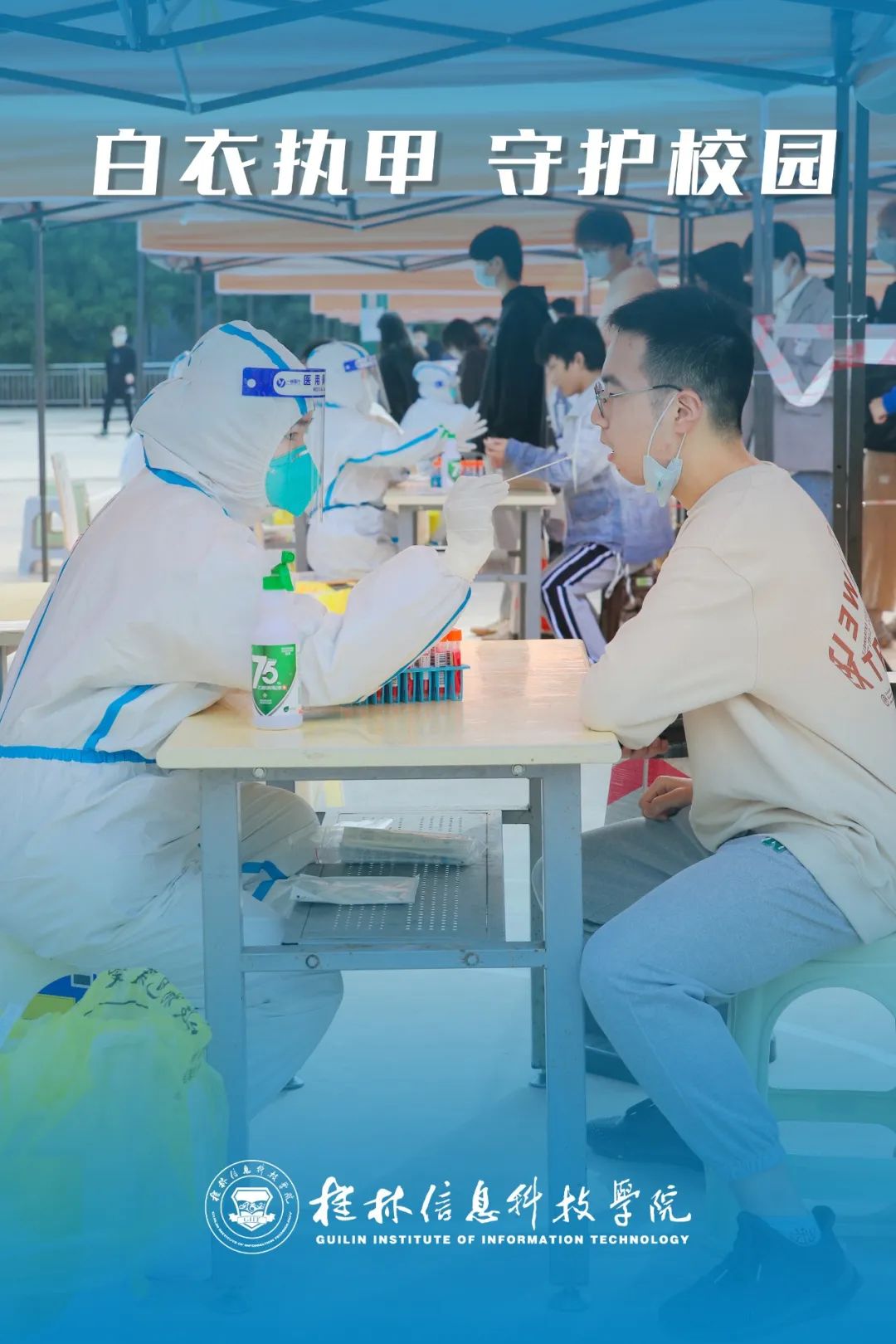 当前,桂林疫情形势逐渐严峻,11月19日起,学校井然有序组织全体师生核酸检测在各个学生居住点、五号教学楼广场、篮球场等就近设置核酸检测点学工系统、保卫处、后勤部门志愿者冲锋在前,守好疫情防控“第一线”。