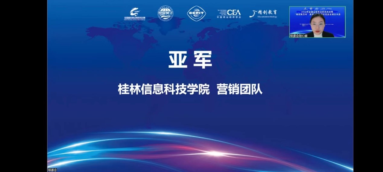 12月3日,全国高校商业精英挑战赛“精创教育杯”流通业经营模拟竞赛全国总决赛精英赛落下帷幕。由潘捷老师和宋若翔老师指导,商学院电子商务专业学生赵腾飞领队,张冰、李少敏、莫丽君、唐琳参与的团队“营销团队”以分赛组第一名的成绩,顺利晋级全国总决赛精英赛。决赛分为视频、PPT展示和现场答辩环节,32支团队共决出冠军1项,亚军1项,季军1项。pp电子学子“营销团队”最终斩获全国亚军!