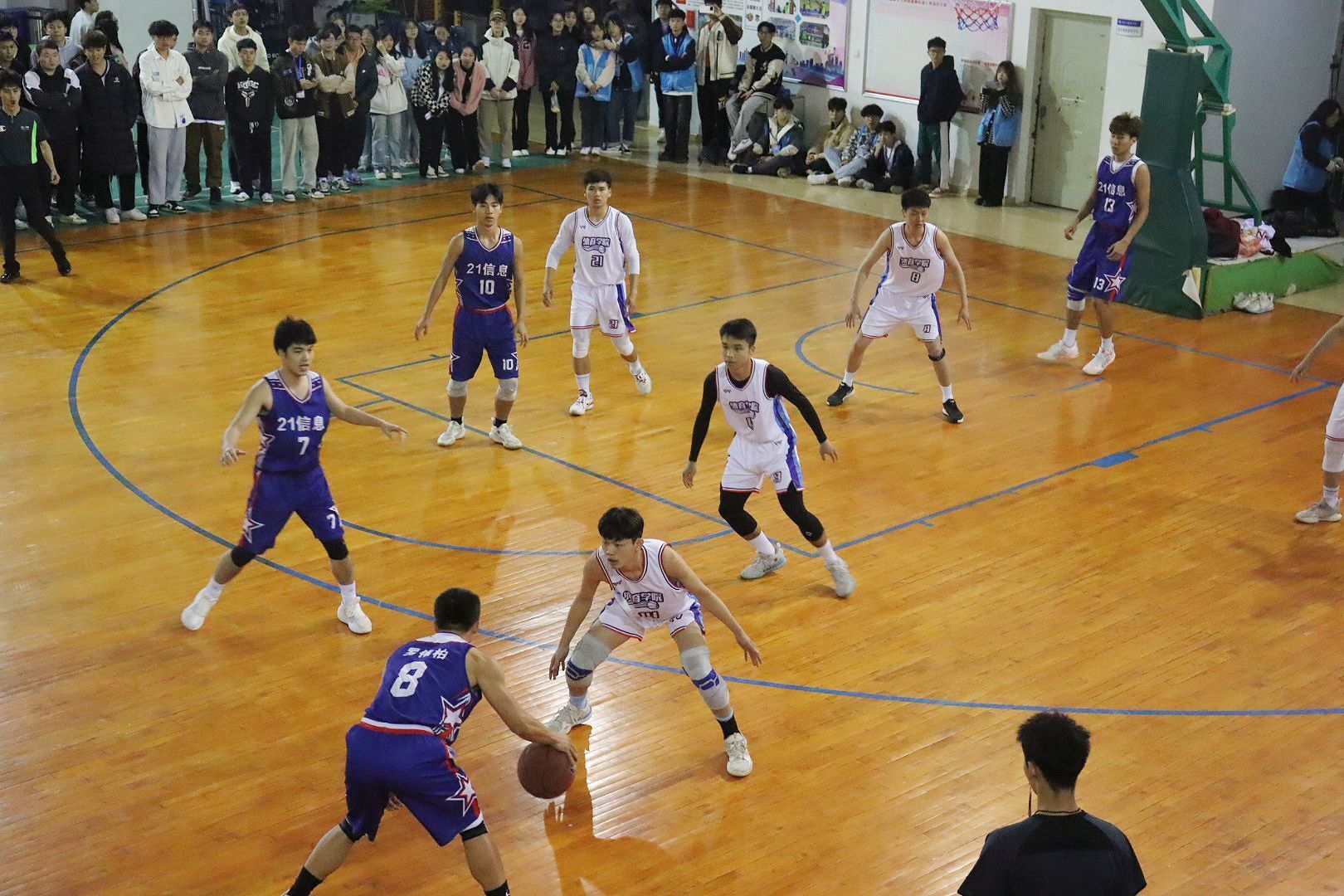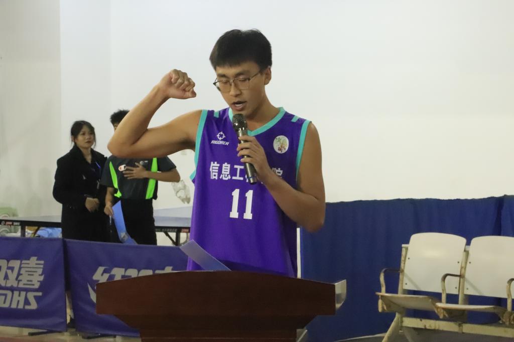 开幕式在大学生艺术团青春活力的舞蹈《奔跑吧青春》中拉开序幕。开幕式上,裁判员代表叶镇宇和运动员代表周鑫分别代表裁判员和运动员进行宣誓,关永康老师受赛事组委会委托宣布赛事仲裁组名单。开幕式后,“三走”体育民传文化月男篮小组赛揭幕战正式拉开帷幕,并由李飞助理为揭幕战开球。各参赛队队员迅速投入比赛,在场上你争我夺,双方争夺异常激烈,观众情绪高涨,欢呼声、掌声此起彼伏,现场气氛十分活跃。最终,体育与健康学院22级代表队取得了揭幕战的胜利。