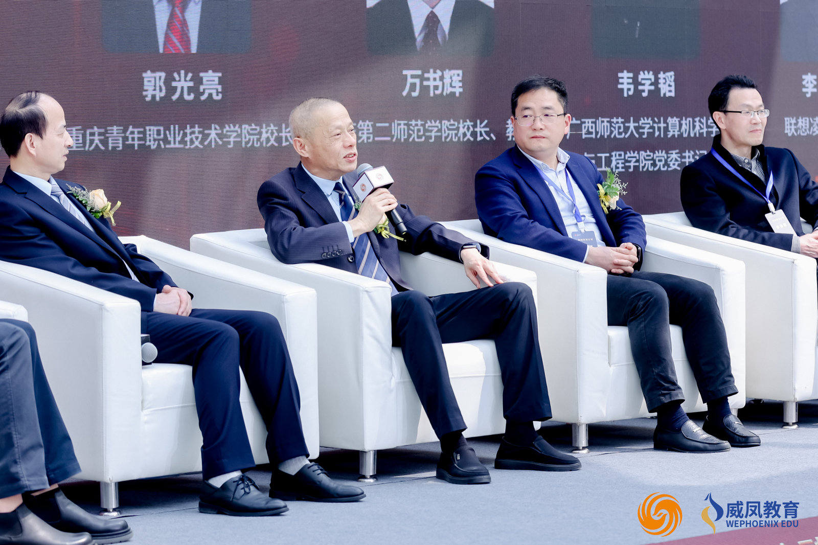 论坛上,pp电子校长梁丁丁与广西师范大学、烟台科技学院、重庆青年职业技术学院、联想凌拓科技有限公司、艾迪普科技公司等校企领导就“校企聚力探索数字技能人才培养新动能”、“数字化赋能职业教育新生态”主题展开研讨,共同探究职业教育数字化转型和改革中的新观察、新思考和新实践。