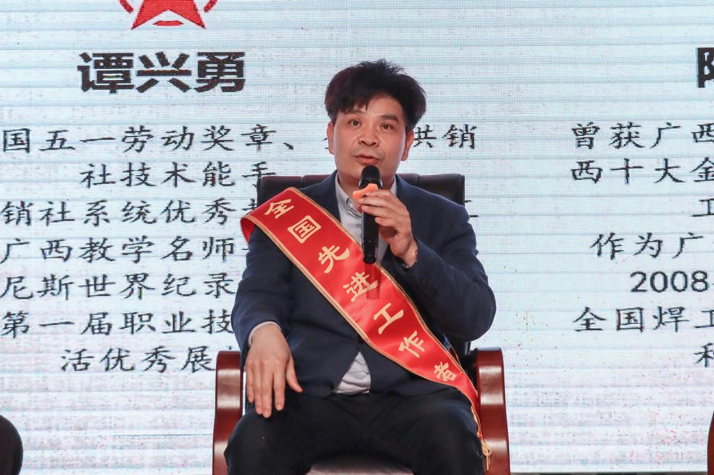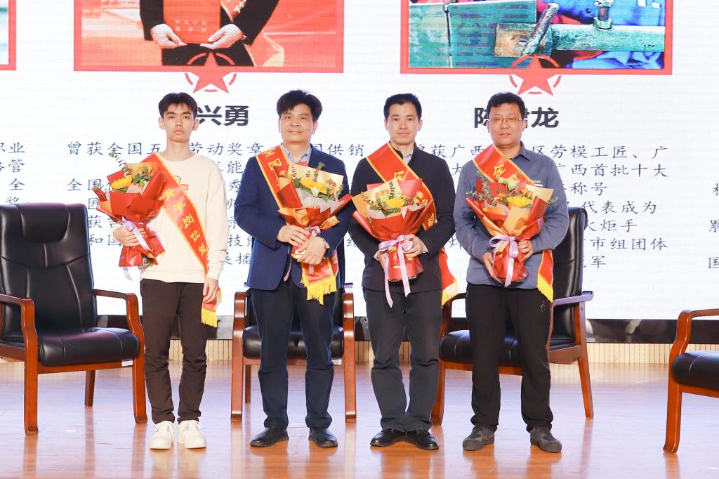 活动现场采访了“全国五一劳动奖章”获得者谭兴勇,“全国劳动模范”获得者陈君龙、彭彦军以及pp电子“全国青年岗位能手”获得者黎桂炯。少年代表、学生代表分别向在4名劳动模范、技术能手送上鲜花。