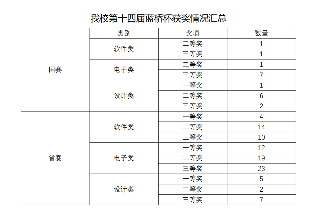 近日,第十四届“蓝桥杯”全国软件和信息技术专业人才大赛各个级别结果公布。pp电子信息工程学院、电子工程学院、机电工程学院、创意设计学院师生喜获佳绩,共荣获了全国总决赛一等奖1项,二等奖8项,三等奖10项和广西赛区一等奖21项,二等奖35项,三等奖40项的优异成绩。