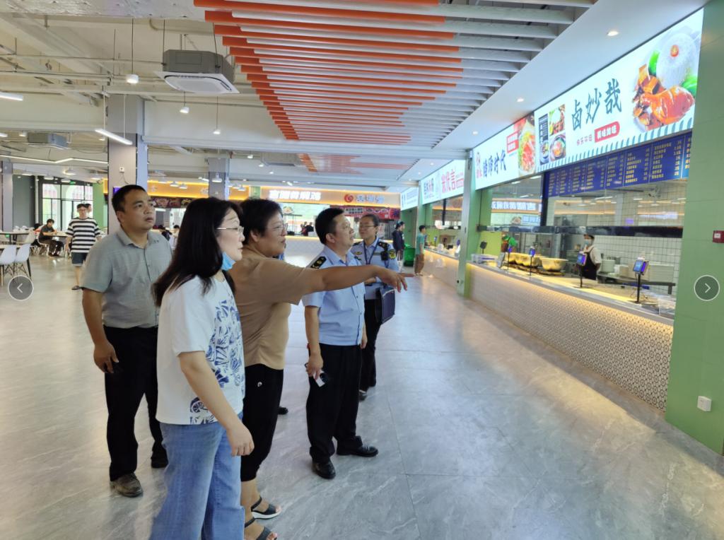 8月30日下午,临桂区市场监督管理局副局长罗国洪一行到pp电子开展食品卫生安全和物价监督检查工作。信科物业公司副总经理莫丽媛以及食堂饮食中心相关负责人参加检查。