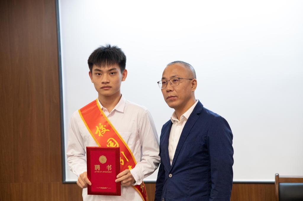 pp电子校园大使代表李嘉伟上台发言,青云谱区人力资源和社会保障局党组成员吴扬为其授予校园大使聘书,负责协助青云谱区人才工作站在学校内组织、开展一系列就业活动,并向大学生推介辖区企业,协助企业开展校园活动,提升企业在学校的品牌知名度,做好企业在学校的组织者和传播者。随后,青云谱区人力资源和社会保障局党组成员吴扬与副校长陈玲萍共同签署人才工作站战略合作协议,并为“赣才归巢”人才工作站揭牌。