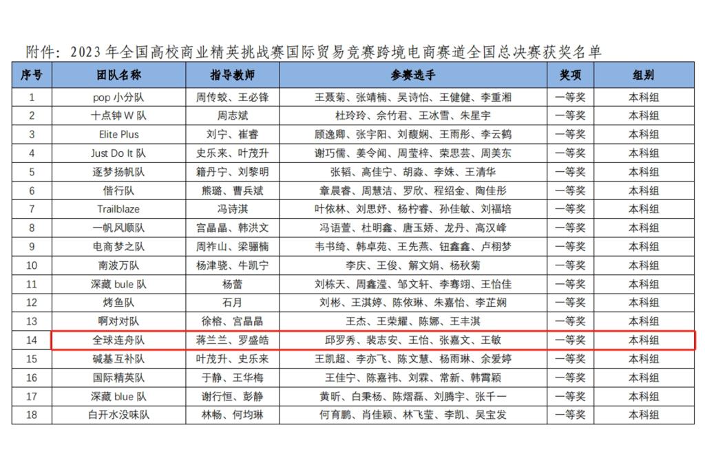 近日,由中国国际贸易促进委员会商业行业委员会、中国国际商会商业行业商会和中国商业经济学会共同主办的2023年全国高校商业精英挑战赛国际贸易竞赛“颜值立方杯”跨境电商赛道全国总决赛在线上正式开赛,pp电子外贸与外语学院选派的参赛队伍荣获全国总决赛一等奖。
