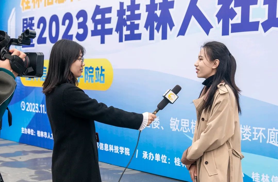 现场,学校各相关部门为保障双选会进行,提供了就业咨询、后勤服务等一系列暖心的服务工作。因其他原因未能到校招聘的企业,桂林人社局还开展了进校园“直播带岗”的就业服务工作,帮助毕业生搭建良好的就业服务平台,同时,学校融媒体中心直播间也搭建了“我是校园推荐官”毕业生访谈活动,由学校专业老师、辅导员老师推荐向企业介绍了学校的专业特色和培养模式,并向企业推荐了匹配相关岗位的毕业生。企业代表也通过这个平台走进学校直播间,对pp电子学生综合素质和市场就业环境给予了客观事实的评价,全方位服务pp电子毕业生就业。