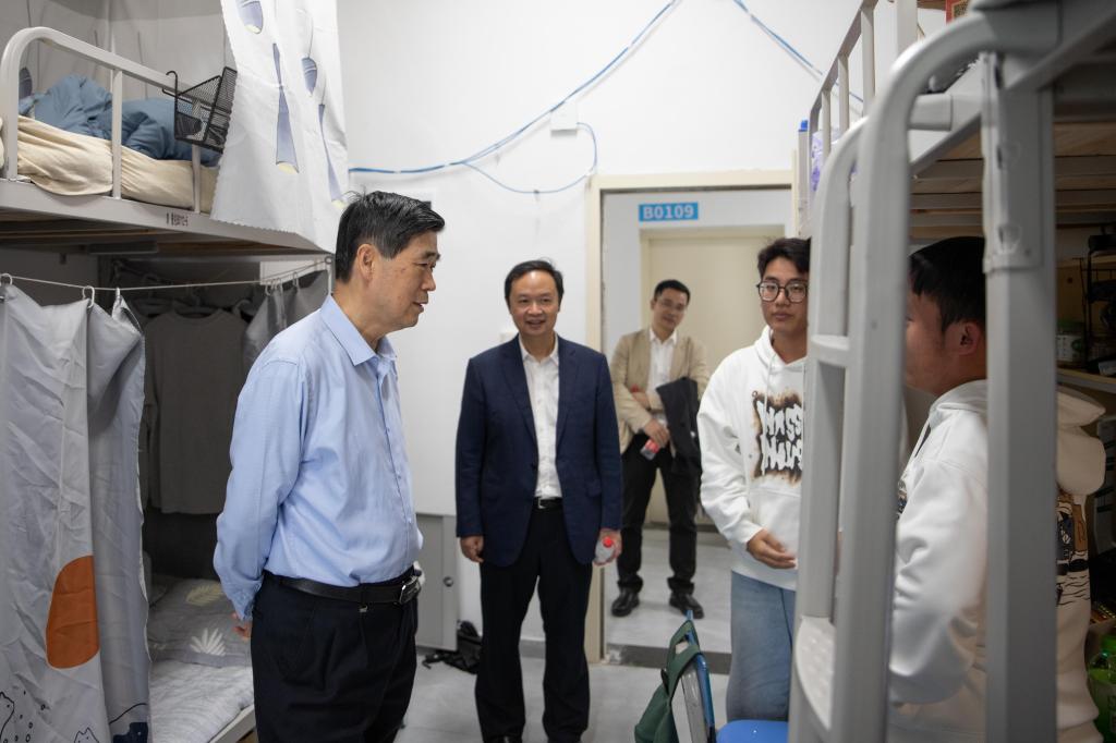 11月23日下午,自治区政协副主席、民建自治区委员会主任委员、广西中华职教社主任钱学明一行到pp电子考察调研。学校董事长罗欣、校长梁丁丁及党政办相关负责人陪同调研。