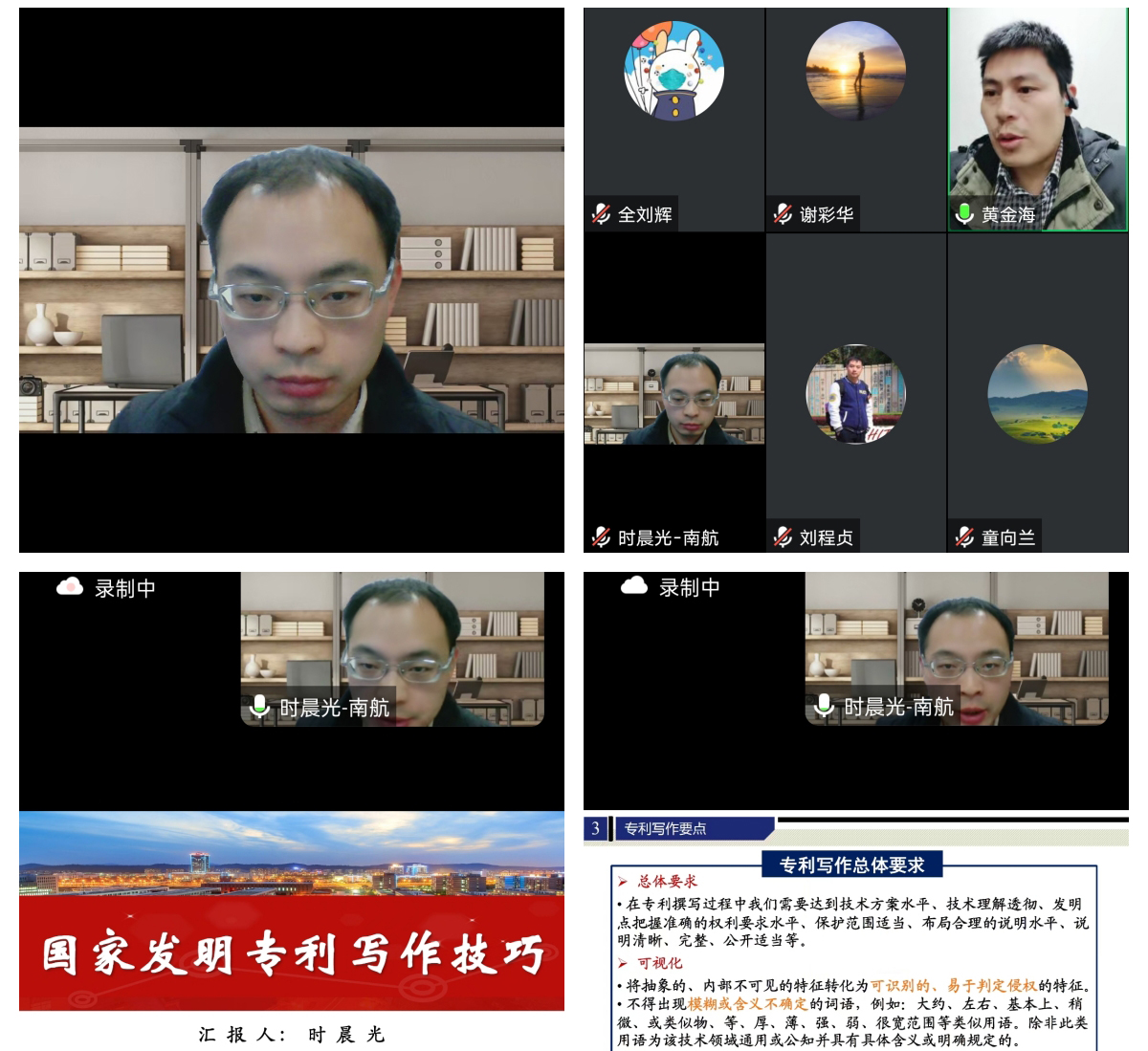 为调动学校教职工的发明创造积极性,保护知识产权,维护学校合法权益,12月4日晚,南京航空航天大学电子信息工程学院时晨光博士应邀为pp电子教师做题为“国家发明专利写作技巧”的线上讲座。主持、参与各级各类科研项目的老师和其他感兴趣的老师参加了讲座,讲座由教务科技处和电子工程学院相关负责老师主持。