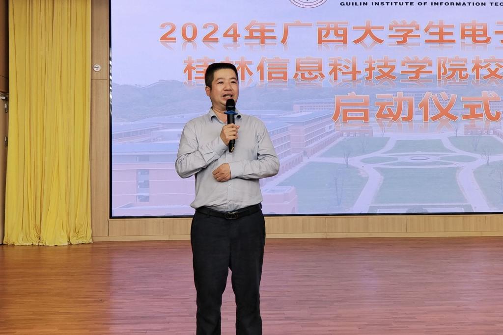 仪式上,韩剑向同学们介绍了全国大学生电子设计竞赛pp电子历年获奖情况。韩剑指出,电子设计竞赛旨在促进电子信息类专业和课程建设,加强大学生创新能力、动手能力、工程实践能力和团队协作精神的培养,希望同学们积极参加竞赛,以赛促学,以赛促练。随后,韩剑宣布广西大学生电子设计竞赛pp电子模拟器网站校内选拔赛正式启动。