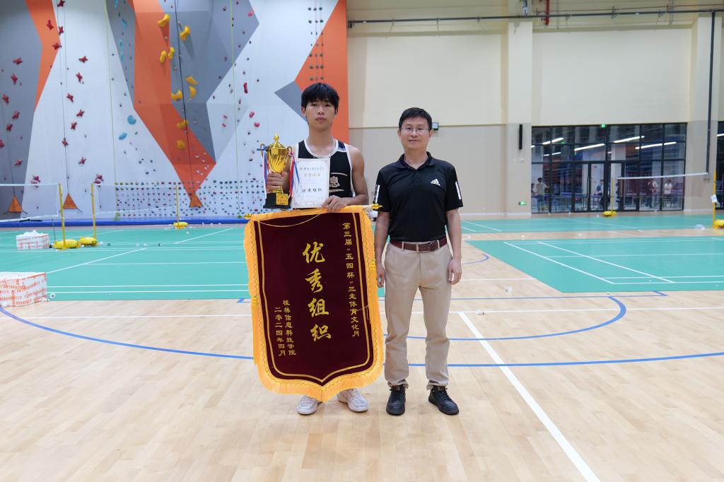男子篮球决赛比赛结束后还进行了学校第三届“五四杯”三走体育文化月闭幕及颁奖仪式,与会领导和嘉宾为获奖队伍颁发了奖杯、锦旗等。本届“五四杯”三走体育文化月从4月下旬启动,持续至今,吸引了来自全校7个学院近700位同学报名参赛,组建了49支球队,共计92场比赛,期间共进行了羽毛球比赛、乒乓球比赛、国标排球比赛以及篮球比赛等4个大项比赛项目,共吸引了全校5000余人次参与。