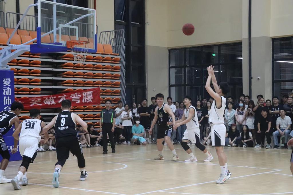 决赛现场,随着裁判一声哨响,双方球员迅速进入状态,展开激烈争夺。赛场上,双方球员你来我往,进攻防守之间展现出极高的竞技水平。每当有精彩的进球或防守,现场观众都会爆发出热烈的掌声和欢呼声,为球员们的精彩表现喝彩。在比赛过程中,双方球队都发挥出了自己的特色。其中,商学院男篮以快攻和团队配合为主要得分手段,而信息工程学院男篮则依靠内线强攻和三分球取得优势。比赛节奏紧凑,双方比分交替上升,让观众们看得热血沸腾。