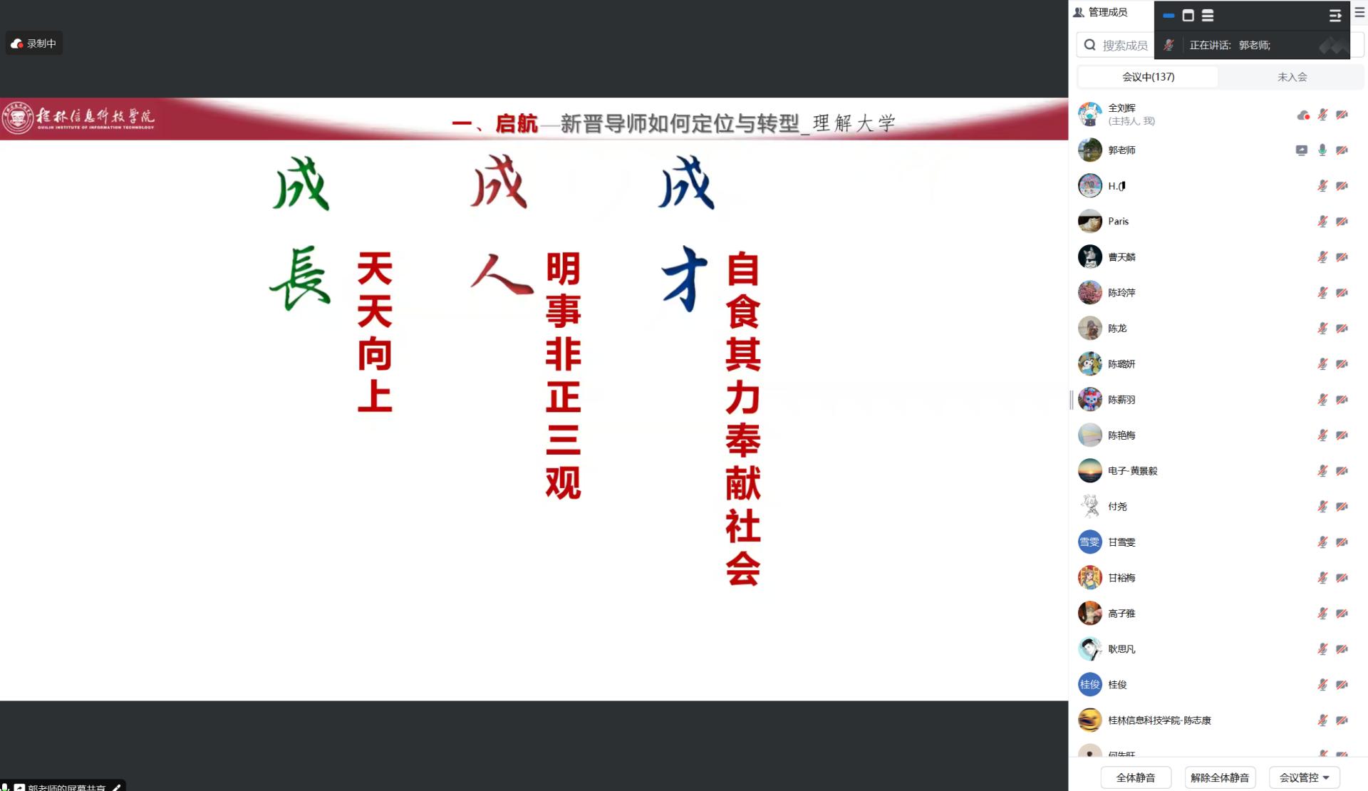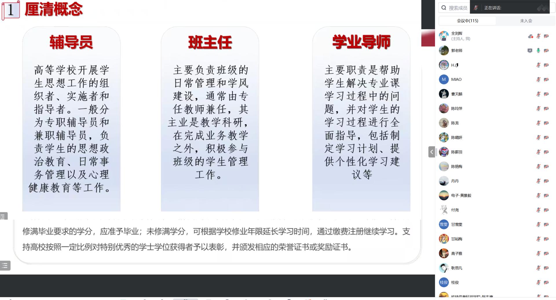 此次培训不仅加深了学业导师对角色定位与工作内容的理解,更为他们提供了宝贵的实践指导与经验分享。学业导师需不断提升自身专业素养与指导能力,努力成为学生成长道路上的引路人和同行者,为学生的成长成才贡献更多智慧与力量。