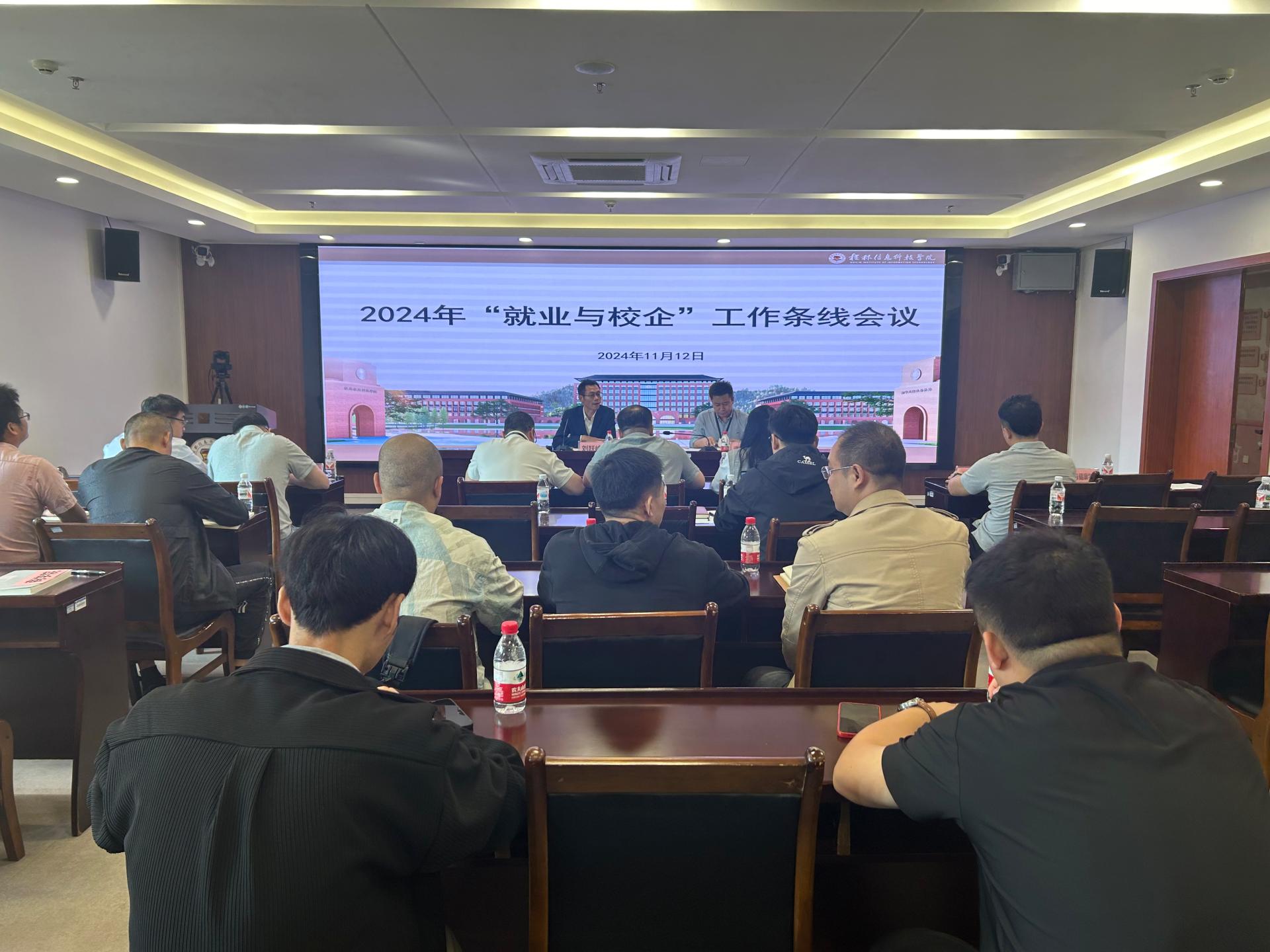 11月12日,学校在知行楼818会议室成功召开“就业与校企”工作条线会议。学校副校长刘跃峰出席会议,各二级学院党委(党总支)书记、分管校企合作条线主要负责人、学工办主任(负责人)、就业指导服务中心、校企合作处相关人员参加此次会议,会议由就业指导服务中心主任兼校企合作处处长李晓健主持。