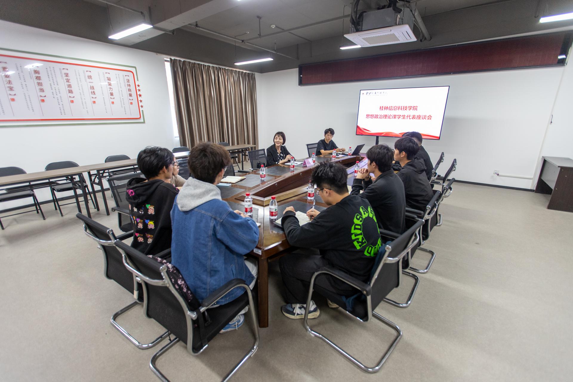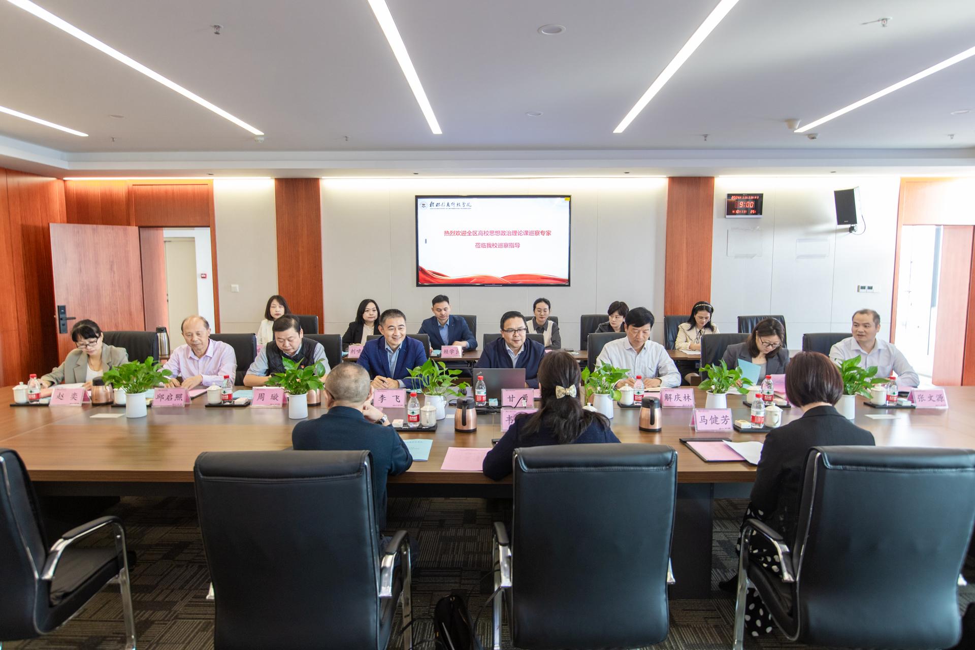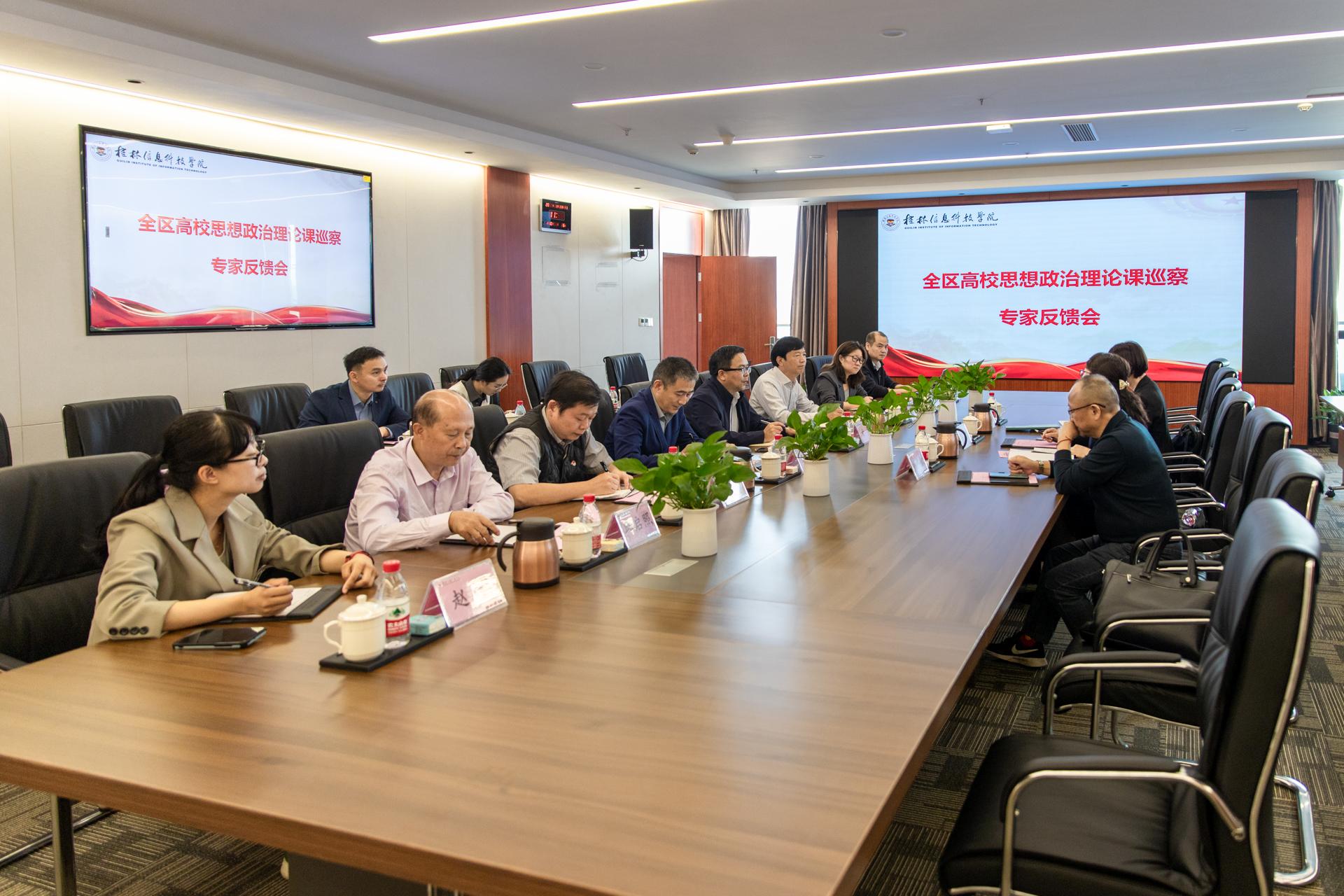 11 月 11 日上午,由广西师范大学马克思主义学院教授韦冬雪,梧州学院马克思主义学院教授尹杰钦,桂林师范高等专科学校马克思主义学院院长、教授马健芳组成的广西高校思想政治理论课教学巡察组第七组到pp电子巡察思想政治理论课建设工作。巡察工作涵盖汇报、座谈、实地走访、反馈等环节。学校党委书记甘勇,校长、党委副书记解庆林,党委副书记李飞,副校长陈玲萍,纪委书记、校长助理周璇,马克思主义学院相关部门负责人、思政课教师代表参加了此次巡察工作。