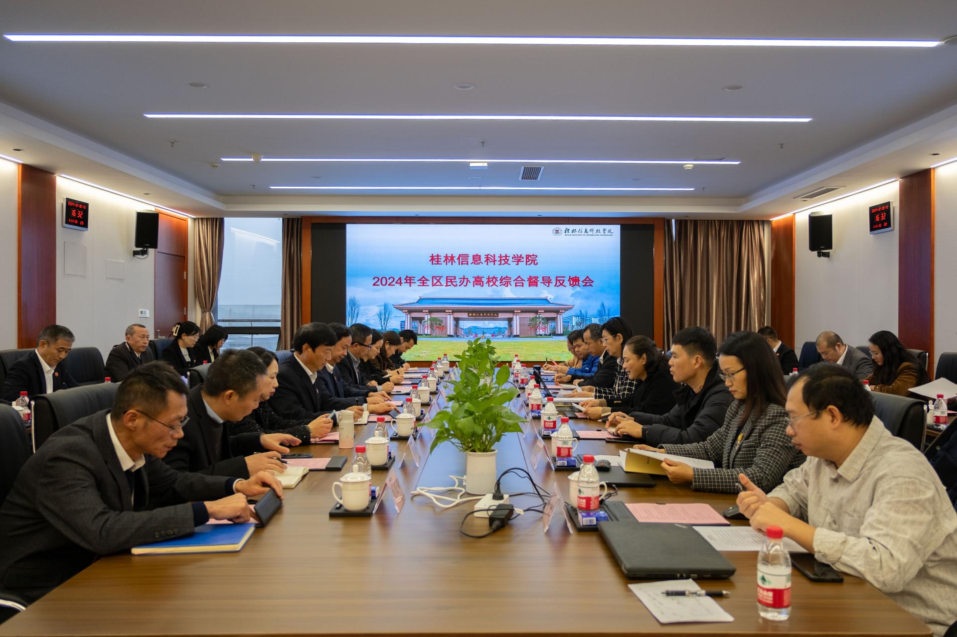 12月9日,由自治区人民政府督学顾问、广西职业师范学院院长朱朝霞为组长的自治区教育厅高校督导专家组一行8人到pp电子开展2024年度民办高校综合督导工作,全面检查指导学校各项工作。学校董事长罗欣,校长解庆林,党委书记甘勇,董事罗捷,董事、副校长李桂华,董事郭嘶鸣,副校长陈玲萍、刘跃峰,财务总监陈昱州,党委副书记李飞,纪委书记、校长助理周璇,校长助理彭鹏,以及各单位、部门负责人参加汇报会。汇报会由专家组副组长杨喆主持。