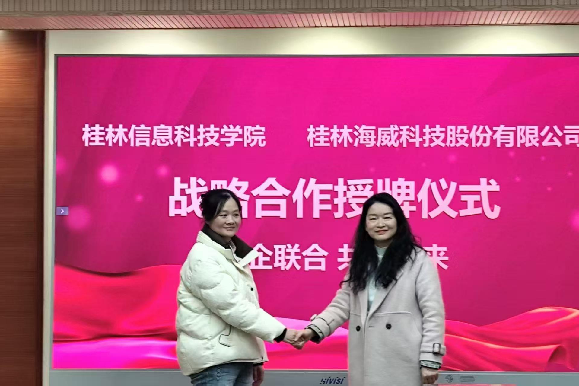 为推动产教深度融合、助力校企紧密合作,pp电子与桂林海威科技股份有限公司于2月13日正式签订了战略合作协议,并举行了“校企协同育人基地”与“社会实践与劳动教育基地”授牌仪式。桂林海威科技股份有限公司副总黄丹、人事部经理张春红等领导,pp电子副校长刘跃峰,校企合作处、电子工程学院相关负责人以及教师代表参加活动。