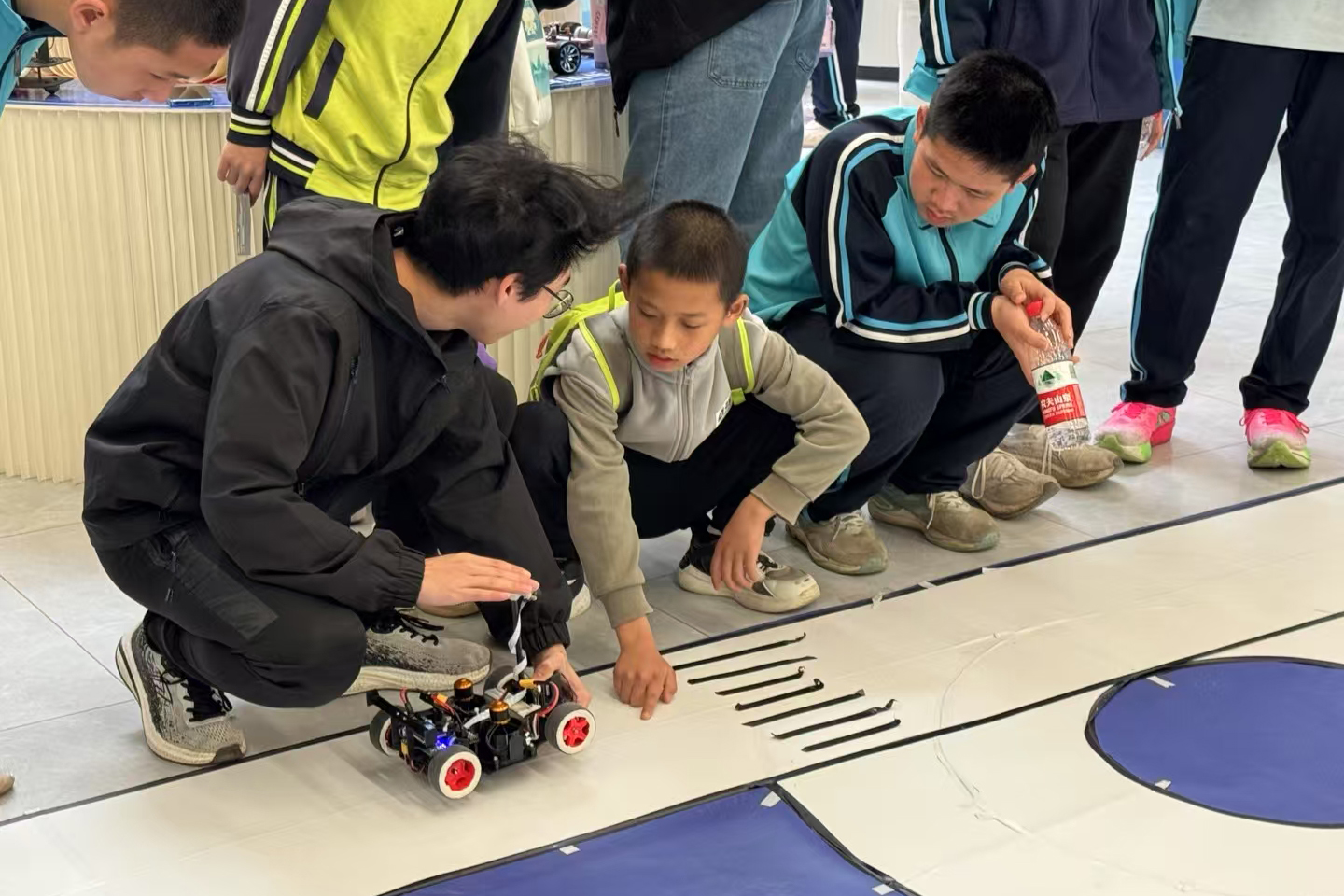 此次大赛吸引了来自桂电中学、临桂三中、田家炳中学、桂林三中、清风实验学校、逸仙中学、大河中心校、中山中学(按照到场时间先后顺序)等8所中学近千名师生到场观赛。此次比赛展示了“机器视觉”、“人机交互”等先进技术的实际应用方法,现场多功能机器人团队的精彩对抗也向中学生们生动展现了战术配合技巧与团队合作精神。现场的中学生们沉浸于场内各式机器人的激烈战斗,掌声也都跟随着比赛节奏而此起彼伏。同时,pp电子还在学校双创基地、知行楼科技文化月现场等地组织了科技展览和互动体验活动,让中学师生在观赛之余,还能深入了解高校的科研环境、教学资源以及科技创新成果,为他们提供了近距离接触智能科技的机会,为未来的学业规划和职业发展提供有益参考。