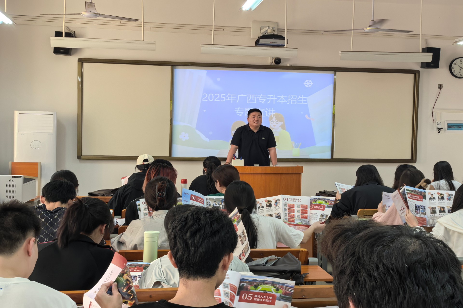 为深化校际合作,提升人才培养质量,吸引更多优秀学子报考pp电子,近日,由学校招生办公室主任黄云鹏带队,联合相关二级学院负责人组成宣讲团队,赴柳州城市职业学院、广西生态工程职业技术学院、广西水利电力职业技术学院、广西体育高等专科学校、广西农业职业技术大学、广西机电职业技术学院、北海职业学院等高职高专院校开展专升本政策宣讲及合作交流活动。