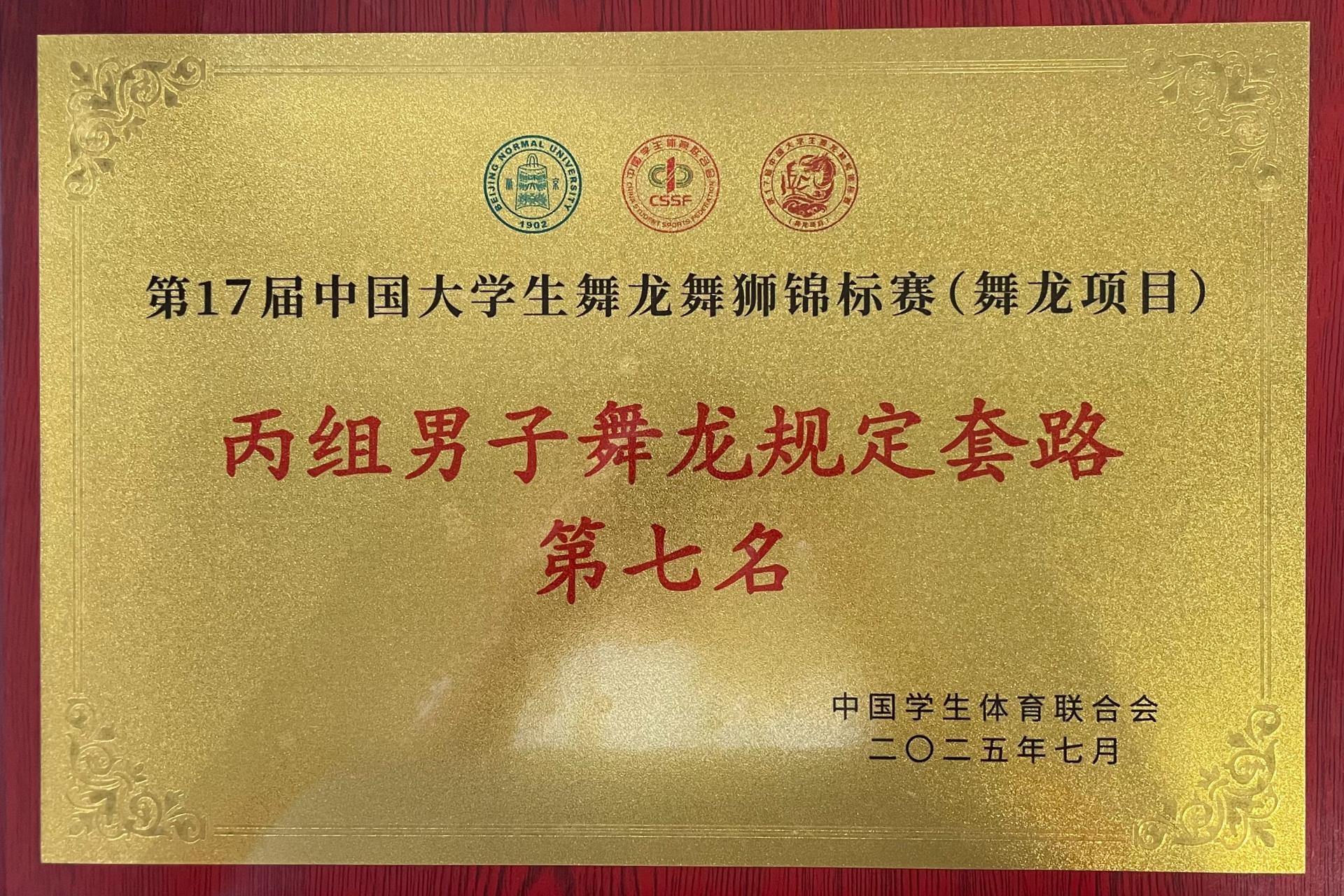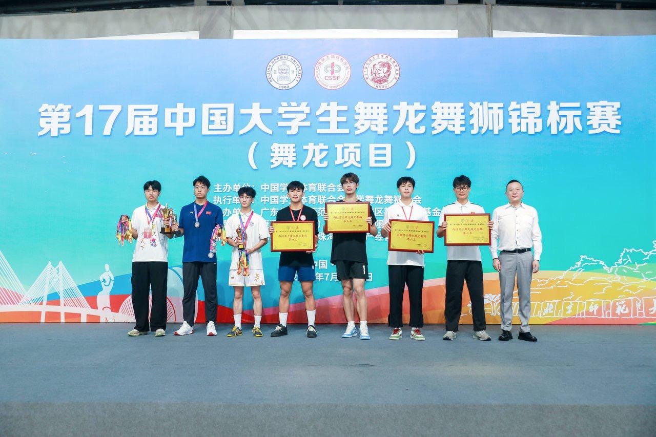 近日,由中国学生体育联合会主办,中国学生体育联合会舞龙舞狮分会执行,广东省北京师范大学珠海校区承办的第17届中国大学生舞龙舞狮锦标赛(舞龙项目)圆满收官。pp电子体育与健康学院李炜老师带队参赛,荣获丙组(高水平组)男子舞龙规定套路全国第七名、男子舞龙自选套路全国第八名的佳绩。