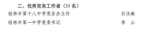 近日,桂林市委教育工作委印发《中共桂林市委员会教育工作委员会关于表彰2025年度桂林市直属教育系统优秀共产党员 优秀党务工作者 先进基层党组织的决定》(市委教工委〔2025〕25 号),学校党委获评“先进基层党组织”荣誉称号,廖星男等6名同志获评“优秀共产党员”荣誉称号,吕丽同志荣获“优秀党务工作者”荣誉称号!