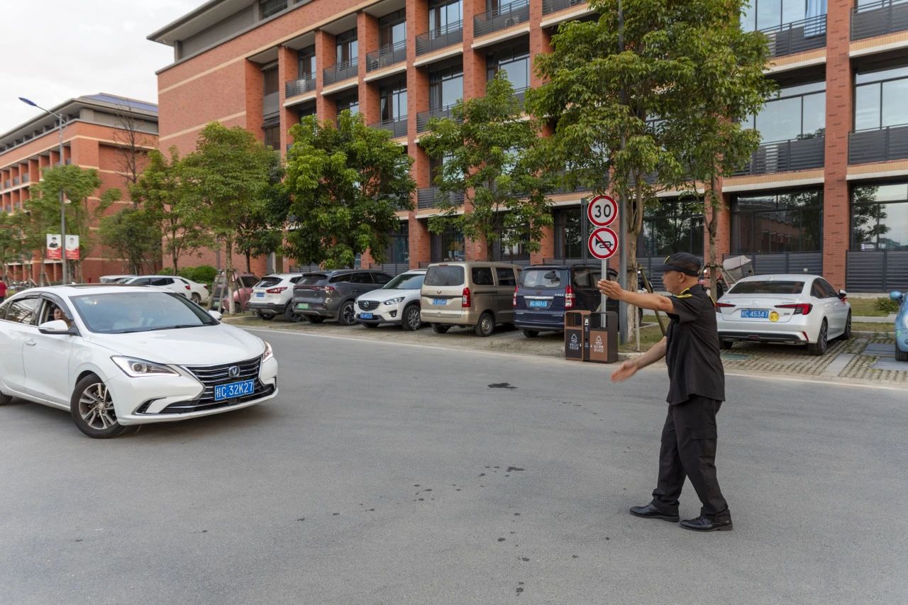 从晨曦的第一缕阳光开始巡逻、烈日暴晒下的交通指挥、各个接驳点的秩序维护到深夜的安全守护,他们的目光始终坚定。校门前,保卫队员们笔挺守候,指挥、巡逻,为校园撑起一张安全的网。