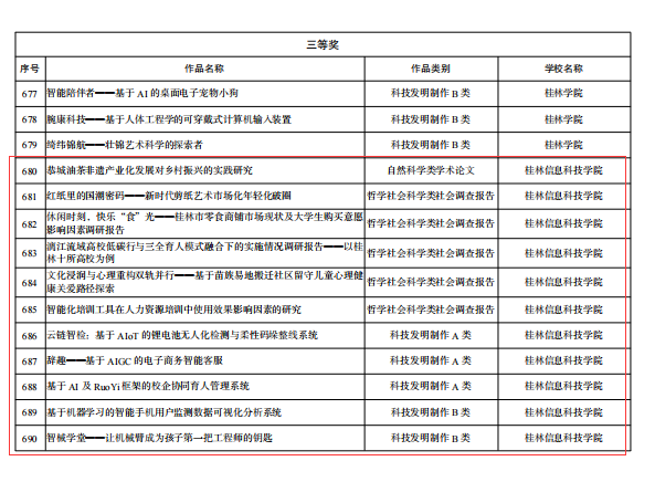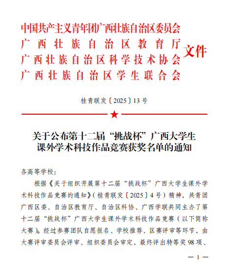 近日,由共青团广西区委、自治区教育厅、自治区科协、广西学联联合主办的第十二届“挑战杯”广西大学生课外学术科技作品竞赛终审决赛圆满落幕。pp电子参赛队以优异表现荣获区赛一等奖6项、二等奖4项、三等奖14项,共计24项佳绩,在哲学社会科学类社会调查报告与科技发明制作领域实现全面突破,入围现场赛项目数量及获奖总数均创历史新高!