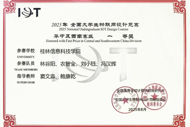 近日,由教育部计算机专业教学指导委员会发起、全国高等学校计算机教育研究会主办的2025年全国大学生物联网设计竞赛总决赛在浙江大学落下帷幕。在本次学科竞赛中,pp电子首次组队参赛即交出优异答卷:1项国家级二等奖、2项区域赛一等奖的获奖成绩,标志着学校在该领域竞赛实现从“0”到“1”的跨越。