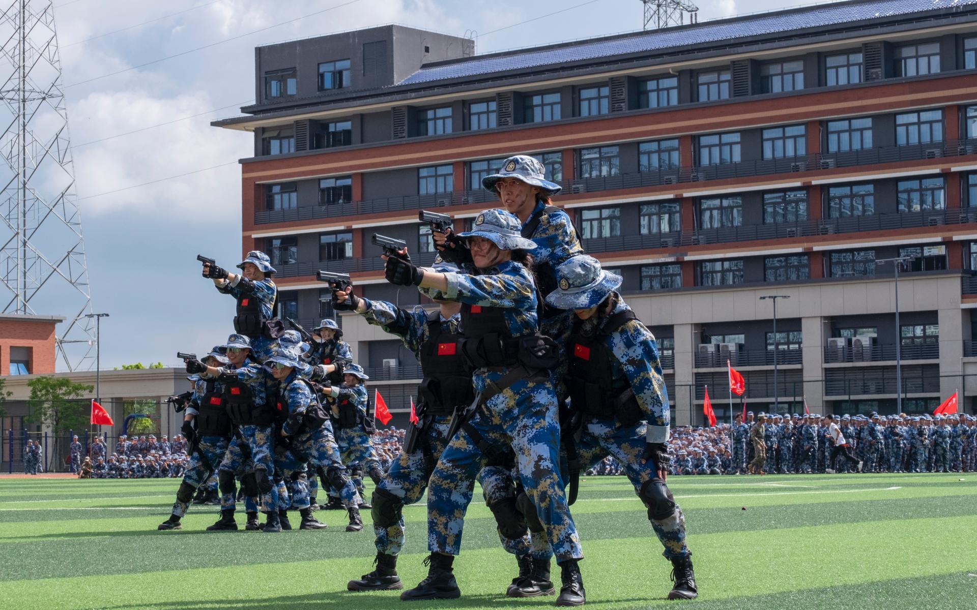 据悉,本次军训安排了共同条令教育与训练、射击与战术训练、防卫技能与战时防护训练、战备基础与应用训练等4类14项内容。学校利用全媒体技术对此次军训汇演进行了全程直播,据统计,通过学校官方平台观看此次汇演的观众人数超10万人次,共获得点赞超过30万次。