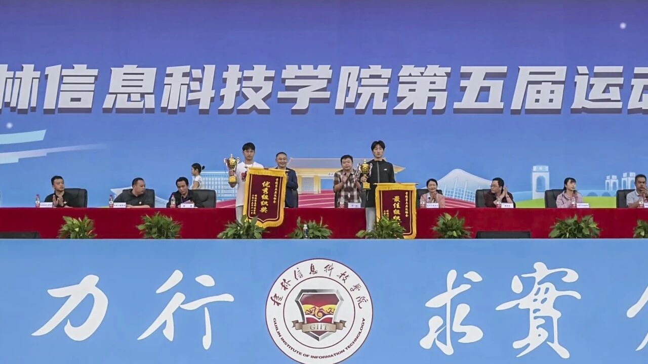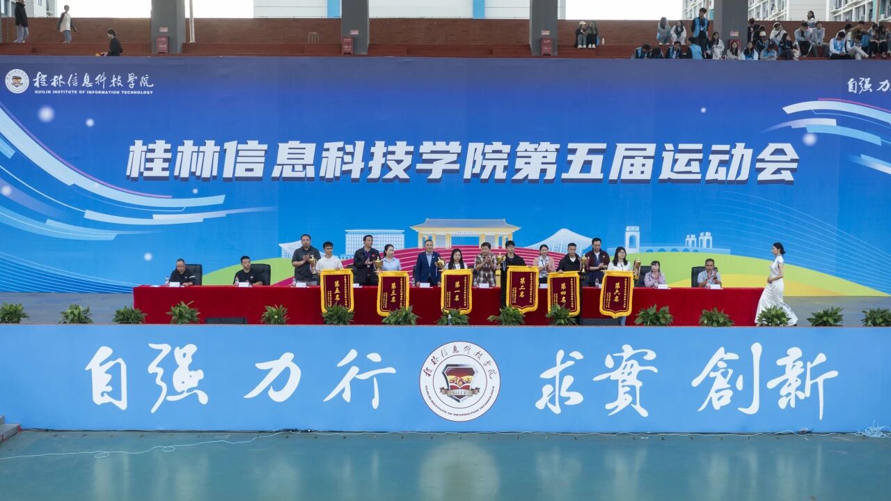 闭幕式上,运动会总裁判长周勇宣布了第五届运动会各项比赛成绩,主席台领导分别为获奖团队和个人进行颁奖。