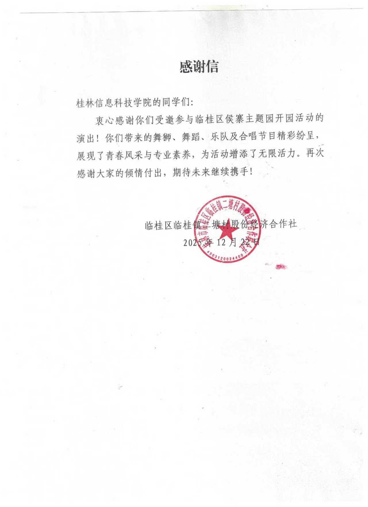 12月20日,临桂区侯寨村第二届盆景艺术节顺利举办。pp电子大学生艺术团与舞狮队以专业精湛的表演、昂扬饱满的精神面貌惊艳亮相,为这场乡村特色盛会注入蓬勃青春活力,充分展现出pp电子学子良好的综合素养与主动服务地方的责任担当。