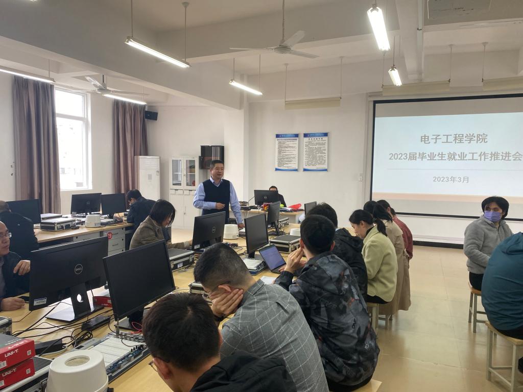 为了进一步做好学院2023届毕业生就业工作,3月8日中午,电子工程学院在41404实验室召开2023届毕业生就业工作推进会。会议由学院院长韩桂明主持,我院全体教师参加。