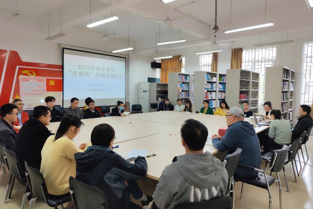 为加快培养我院青年骨干教师,打造一支高素质的教师队伍,3月15日,信息工程学院于12302活动室开展2023年青年教师“传帮带”导师受聘仪式,活动由我院副院长莫永华主持。