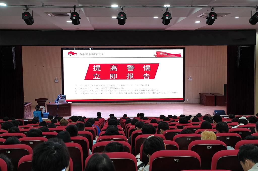 为增强我院学生国家安全意识,自觉维护国家安全。4月15日,电子工程学院于51206报告厅开展“全民国家安全教育日”送法进校园活动,活动由学院分团委副书记朱济亨主持,桂林市公安局七星分局国内安全保卫大队副大队长诸葛明月担任主讲人,七星区人民检察院第一检察部主任徐启良、未成年人检察工作办公室主任石钧文、未成年人检察工作办公室副主任周雅萍出席本次活动,我院各年级团员共150人参加本次活动。