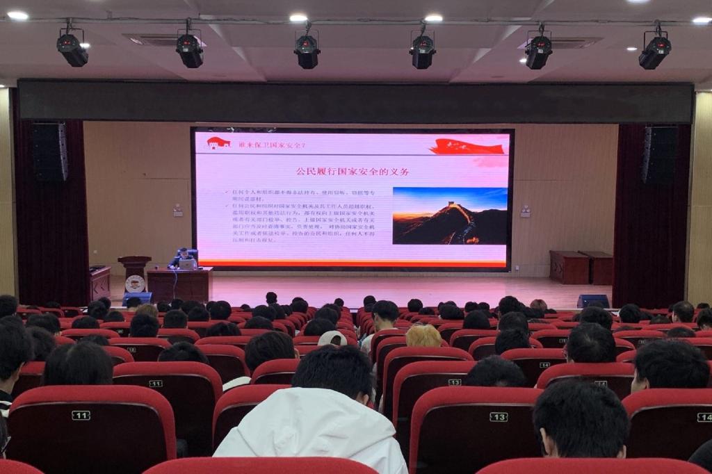 活动中,诸葛明月副大队长从何为国家安全、危害国家安全的行为及相关罪名、如何维护国家安全、谁来保卫国家安全等方面,理论联系实际,从自身角度出发多维度分析案件,向同学们详细的阐述了国家安全法的相关知识。诸葛副大队长将《中华人民共和国国家安全法》的相关法律知识送进校园,给同学们上了一堂生动的法治课,他呼吁同学们作为新时代青年应当担起时代重任,深刻认识到国家安全一切为了人民,一切依靠人民。