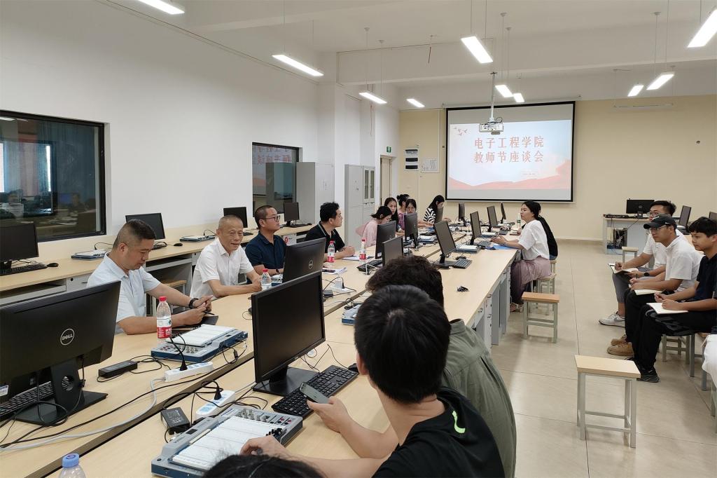 梁校长首先向在座的全体教师致以教师节最诚挚的问候和最衷心的祝福,真诚地欢迎各位新入职教师来到电子工程学院,为学校教师队伍添砖加瓦,并感谢所有教师为学校发展做出的贡献。他表示,在座的每一位教师始终要有热爱教育的定力,不忘教书育人的初心,恪守师德廉洁自律,将个人成长与学校发展融为一体,做敬业、乐业的教育人。互动环节老师们踊跃发言,积极献言献策,抒发心中感慨。有的青年教师提出职业困惑,希望在教学工作、科研竞赛等方面能够得到更多的支持和指导;有的教师对新校区教学环境建设、校内交通系统规划等方面提出建议,针对大家的积极发言,梁校长一一做出解答并给予适当意见和建议,现场气氛活跃融洽。