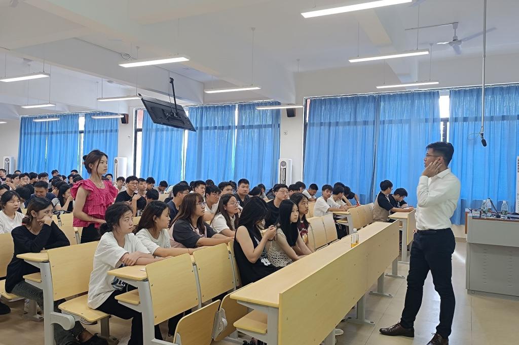 讲座中,蒋鑫博士从半导体器件分类、半导体行业周期性、半导体工艺流程格局、半导体产业链分布图等方面讲解半导体产业,让同学们深入了解半导体芯片产业链;从半导体制造商格局变化、尺寸缩减+3D结构化、半导体设备MSH等方面发展的讲解,让大家认识半导体芯片的发展趋势。蒋鑫博士鼓励同学们要勤奋学习、多思考多实践、不断提高自身综合能力。在交流互动环节,同学们积极提问,蒋鑫博士结合自身扎实的专业知识认真给予解答。