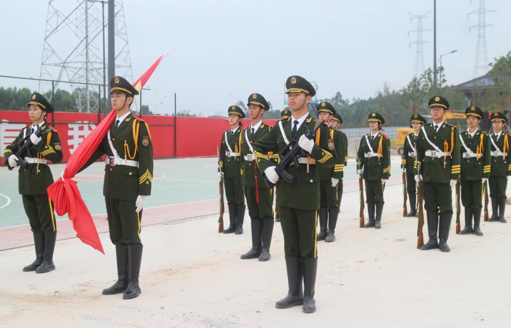 学校国旗护卫队迈着铿锵有力、整齐划一的步伐,列队护送五星红旗走向国旗台,全体师生庄严肃立,齐唱国歌,展现出良好的精神风貌。伴随着嘹亮的国歌声,旗手振臂一挥,鲜艳的五星红旗徐徐展开,在全体师生的注目礼中,五星红旗迎着朝阳冉冉升起,高高飘扬。